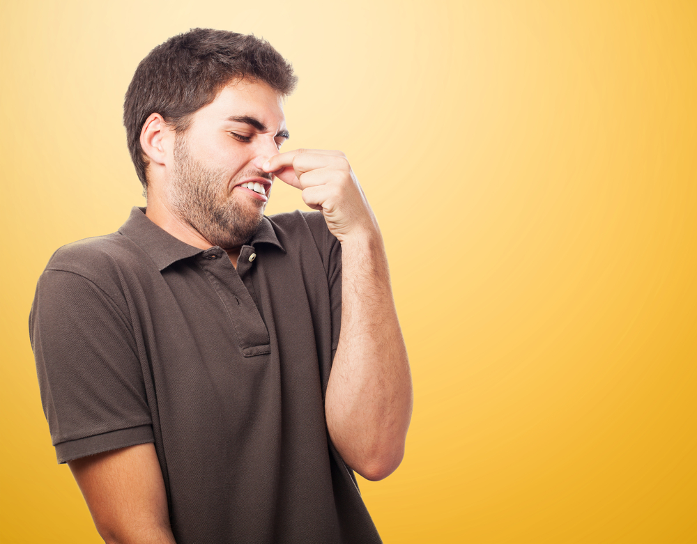 Thirty seconds with a washcloth would have spared my eyes from this sight. What’s the skinny on this palooka? Is he stupid? Rude? Was he born in a barn? Raised by hobos?